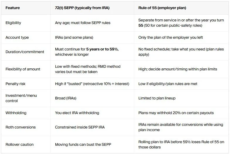 72(t) vs. Rule of 55 — Which option fits your situation better?